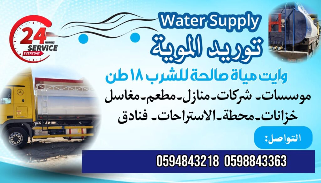 لدينا صهاريج مياه متوفرة للتوصيل اليومي أو الطارئ أو بالجملة